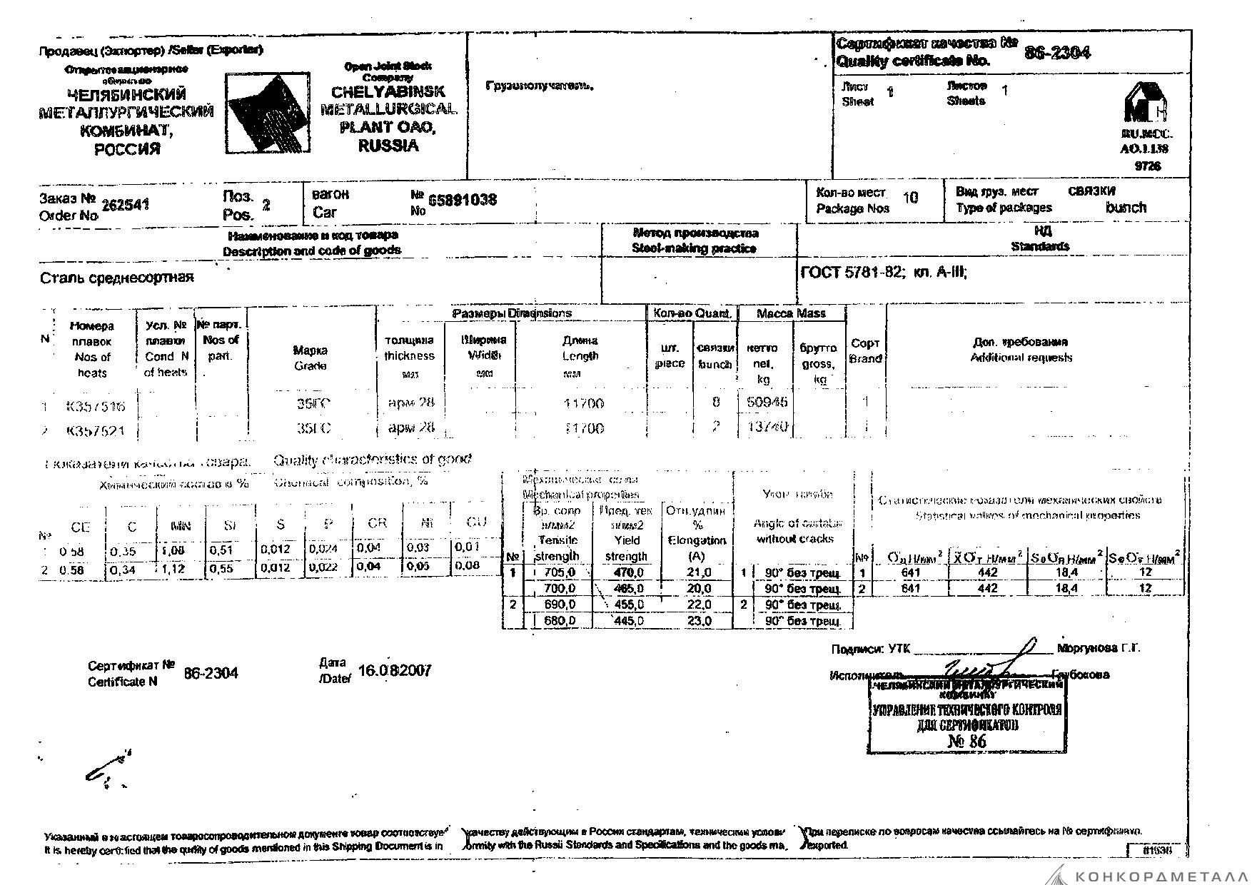 С каждой товарной позицией мы предоставляем все сертификаты и паспорта качества, а также товарно-транспортную накладную.