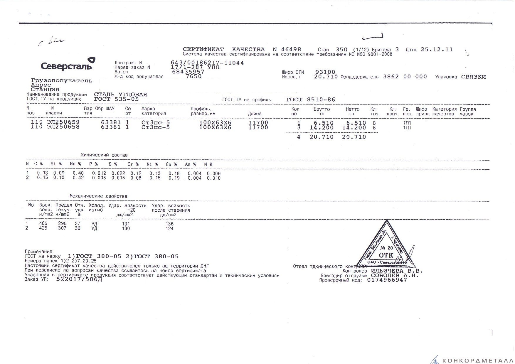 С каждой товарной позицией мы предоставляем все сертификаты и паспорта качества, а также товарно-транспортную накладную.